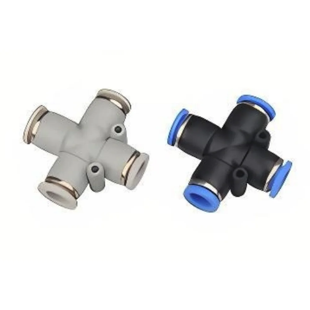 Быстроразъемный цанговый фитинг Waalpc PZ08 (Х-образный разветвитель) предназначен для моментального и надежного соединения пневматических трубок одинакового диаметра (PU, PA, PE) в единую магистраль.