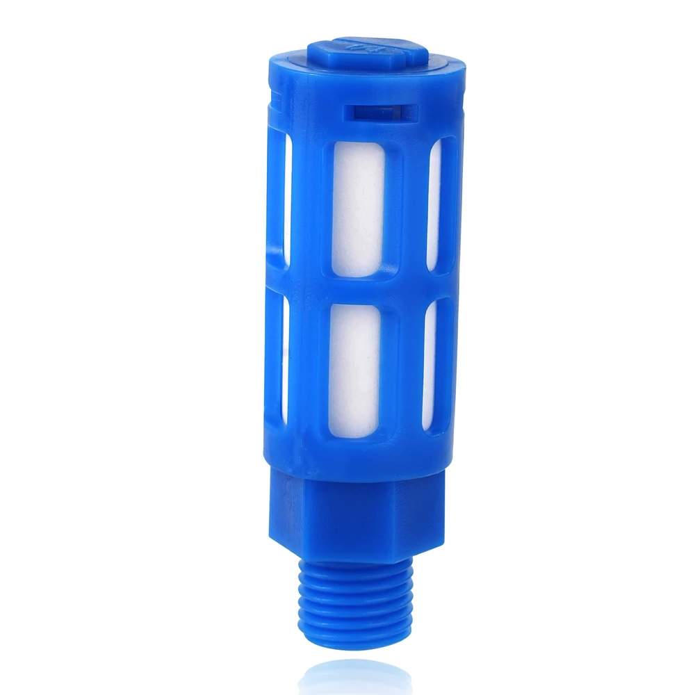 Пластиковый глушитель из пористого полиэтилена, резьба G1/8″, синий корпус.