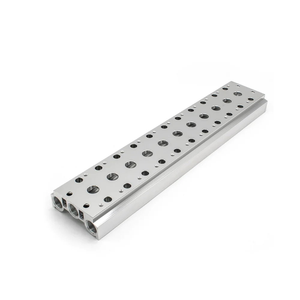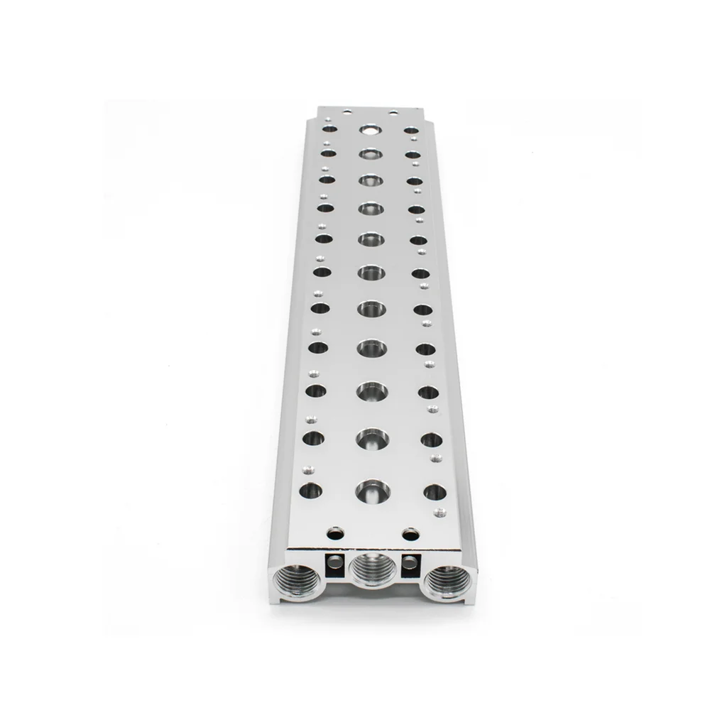• Резьба портов питания и выхлопа (на торцах плиты): G1/4″. Рабочие порты (A/B) располагаются на устанавливаемых клапанах.