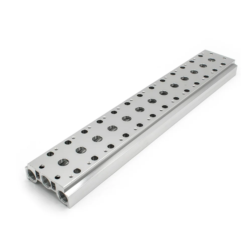 • Резьба портов питания и выхлопа (на торцах плиты): G1/4″. Рабочие порты (A/B) располагаются на устанавливаемых клапанах.