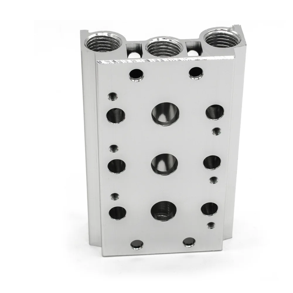 - Резьба портов питания и выхлопа (на торцах плиты): G1/4″. Рабочие порты (A/B) располагаются на устанавливаемых клапанах.