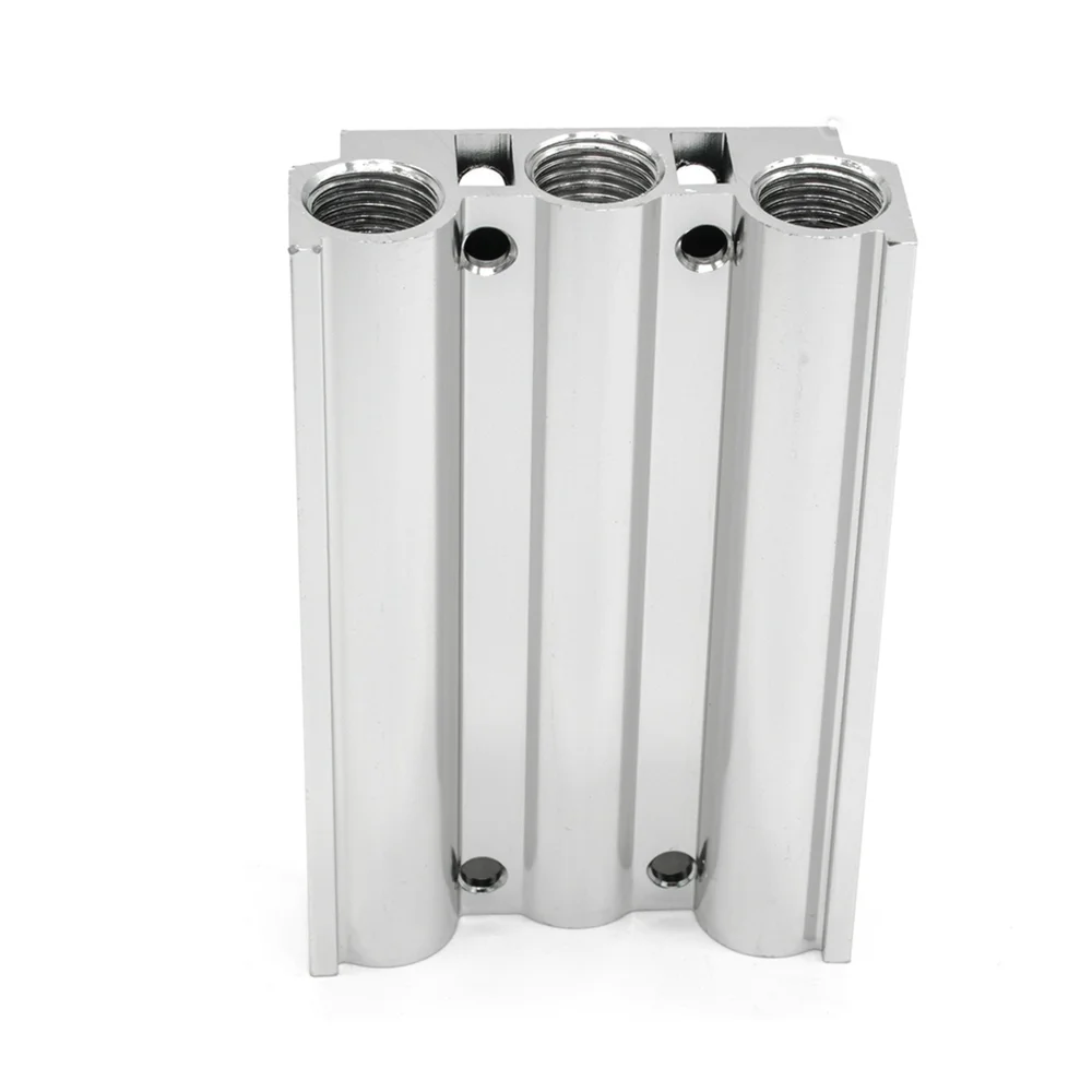 Пневмоостров 200M-3F G1/4 — алюминиевый коллектор на 3 станции для централизованной подачи сжатого воздуха и отвода выхлопа. Установка нескольких распределителей серии 4V (4V210, 4V220, 4V230) на одну плиту экономит место, упрощает разводку трубок и снижает затраты на фитинги и монтаж.